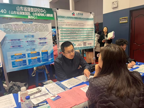 学院领导一行深入双选会现场,实地走访用人单位展位,与多家重点医疗卫生机构、康复中心及医学技术类企业代表进行了亲切交流。韩书记详细了解了用人单位的人才需求及岗位设置,并向优质医院积极推荐我院护理学、康复治疗学、医学技术专业的优秀毕业生。她表示,学院始终坚持“医教协同、产教融合”的办学理念,希望与用人单位在实习基地建设、人才培养、科研项目合作等方面进一步深化合作,共同培养符合行业需求的高素质应用型人才。