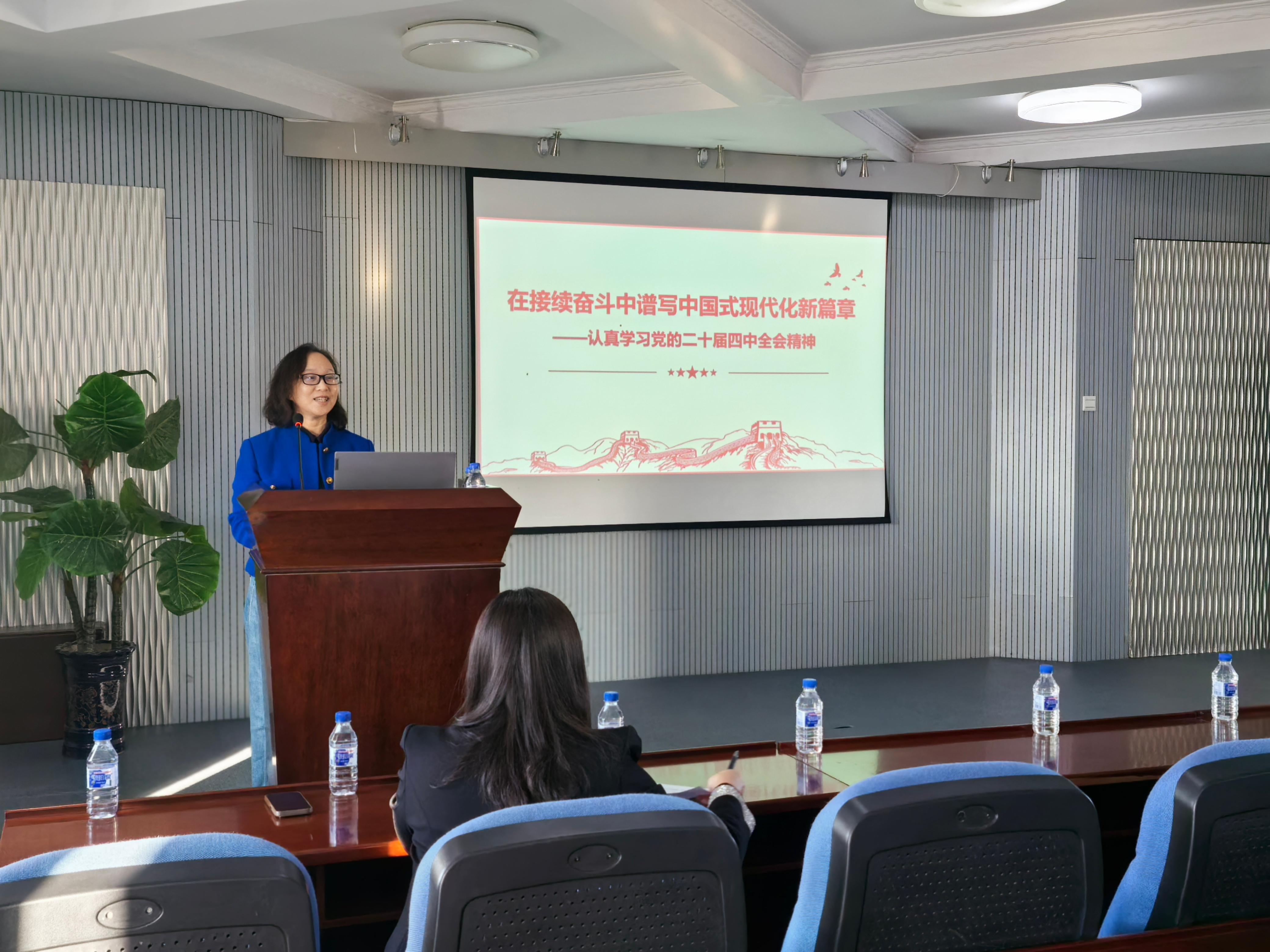 学习贯彻党的二十届四中全会精神专家宣讲团”成员、马克思主义学院教授石瑛作专题宣讲。学院全体教职工、学生代表参加会议。宣讲会由学院党委书记韩月波主持。